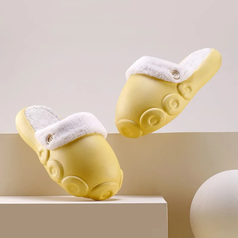 While your feet are cocooned in the soft embrace of our plush, furry interior.