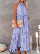 Introducing the Emilia™ Halter Ruffle Maxi Dress, a stunning combination of sophistication and relaxed style. This dress brings elegance to any occasion, perfect for garden parties, beach outings, or romantic evenings.